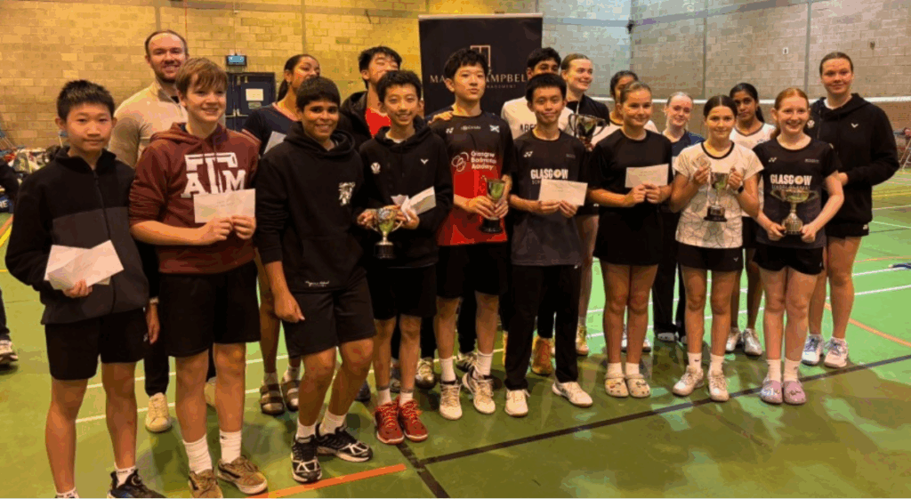 As always, there were lots of entertaining and competitive matches throughout the weekend concluding with some excellent semi finals and finals on the Sunday. There were some very strong Lothian performances in the tournament. In the under 15 age group, Zoe Tait was a double winner (girls’ doubles and mixed doubles). Lothian’s Emma Joshua reached all three finals in the under 15 age group, winning the girls’ doubles with Zoe Tait who was the only doubles winner in the Under 15s. In the under 19 age group, local players Blair Tait (boys’ doubles and mixed doubles) and Deepti Vijayakumar (girls’ singles and mixed doubles) were the only double winners in this age group. Unfortunately, Thomas Fragell sustained an injury in the final of the U19 boys’ singles against his boys’ doubles partner, Arnav Saraswat, which resulted in him having to withdraw from both the boys’ doubles and mixed doubles finals.
